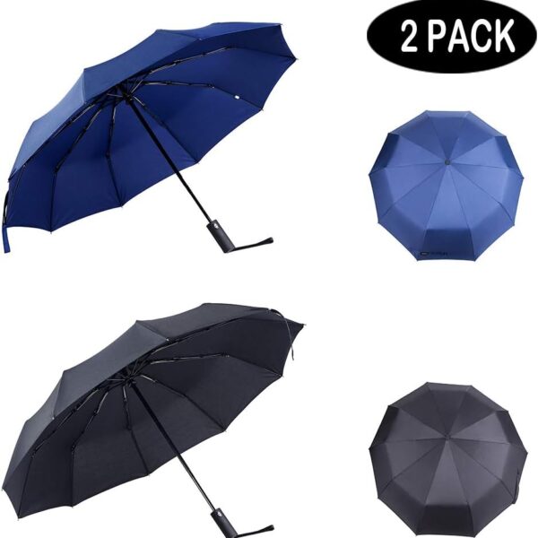 2 Packs Travel Umbrella Windproof Auto Open & Close Collapsible Folding Small Compact Backpack Car travel Essentials Purse Umbrellas for Rain