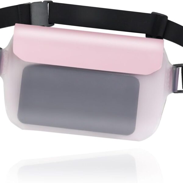 Waterproof Phone Pouch, Transparent and Touchable Fanny Pack for Women Men, Universal Beach Bags Waterproof Sandproof with Adjustable Waist Strap (Pink)