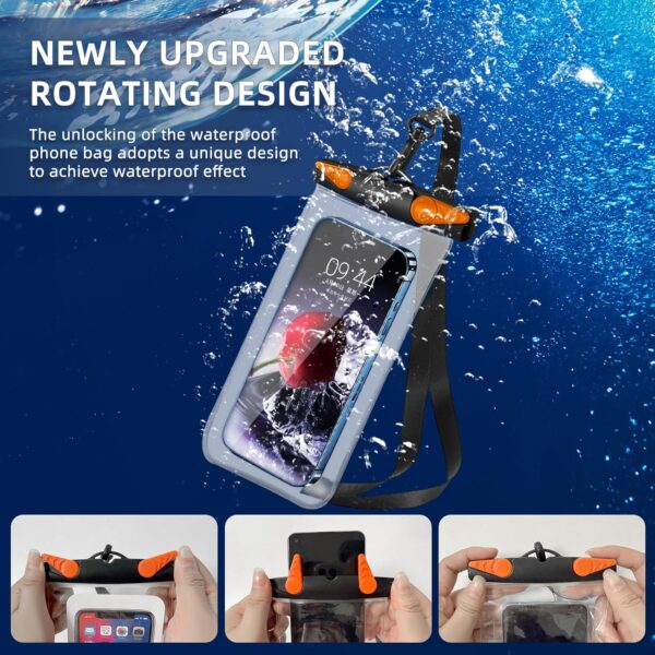 Waterproof Phone Pouch, Waterproof Phone Case with Lanyard for iPhone, Samsung, IPX8 Cellphone Beach Dry Bag Kayak Cruise Ship Essentials 2Pack-7.5″ Black Orange
