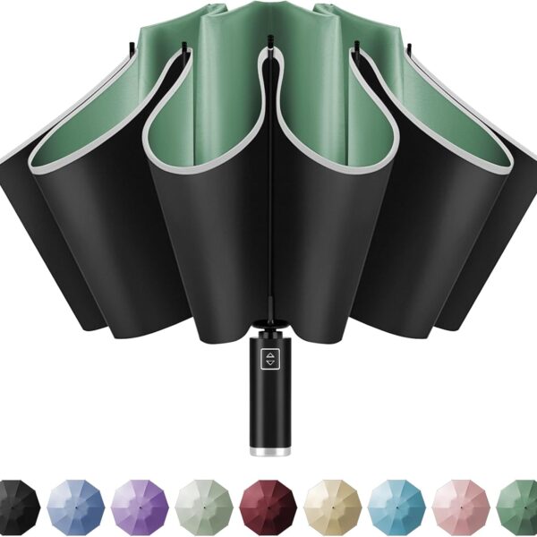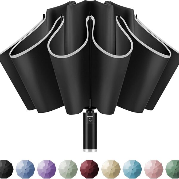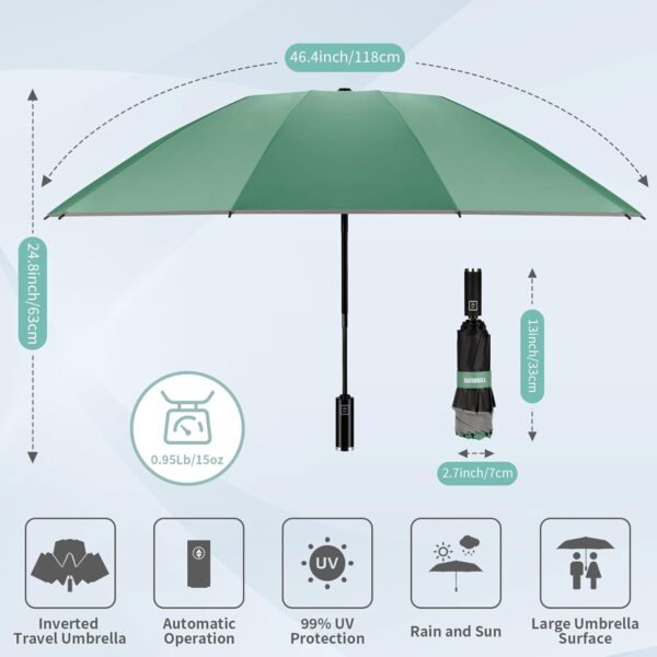 Inverted Travel Umbrella, Automatic Umbrellas for Rain, Windproof Compact Umbrella with Reflective Stripe, Folding Sun Umbrella UV Umbrella, Portable Large Umbrella for Backpack, Lightweight