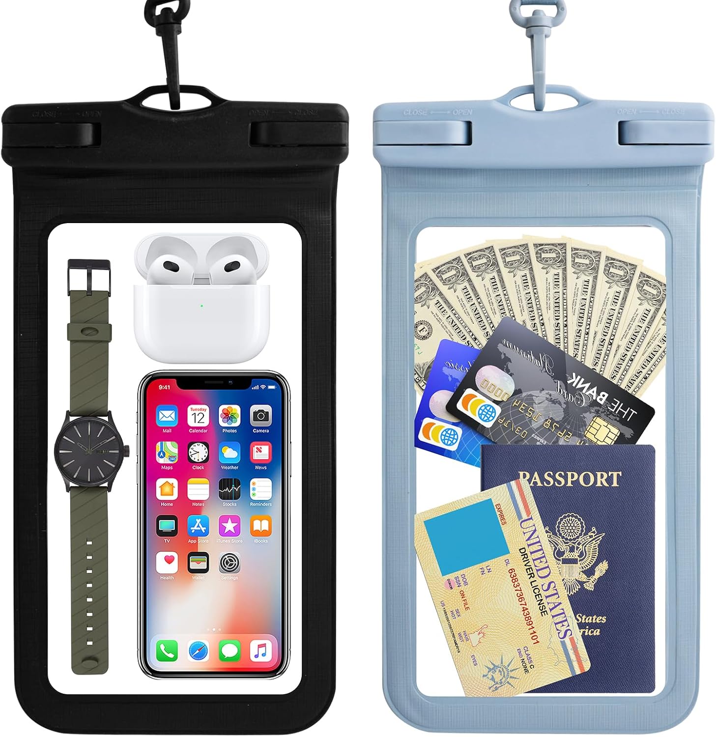 - Extra Large Size for Versatile Storage: Our waterproof pouches are designed with an extra-large capacity, fitting smartphones up to 7.2 inches. Beyond just phones, they provide ample space for essential items like your wallet, passport, credit cards, Apple Watch, and Bluetooth earbuds. This makes them perfect for travel, outdoor adventures, and beach outings, offering more storage than standard pouches.