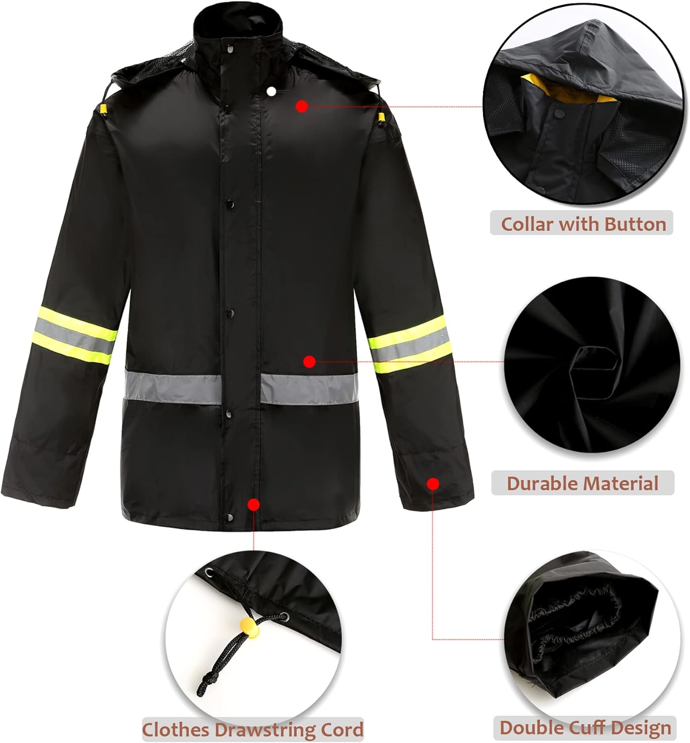 • 【Perfect For Multiple Occasions】This stylish waterproof rain gear is perfectly for daily working, fishing, hiking, mills, Road construction, timber harvest, agriculture, mining, shipyards, forestry, utilities, hunting, food processing etc. It’s great for all occasions to wear.
