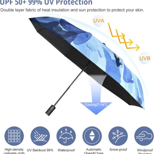 - Automatic Open and Close Umbrella: Easy to open and close, with push button auto-open and auto-close feature. This folding umbrella where you press a button and it automatically open, then close when you press it again