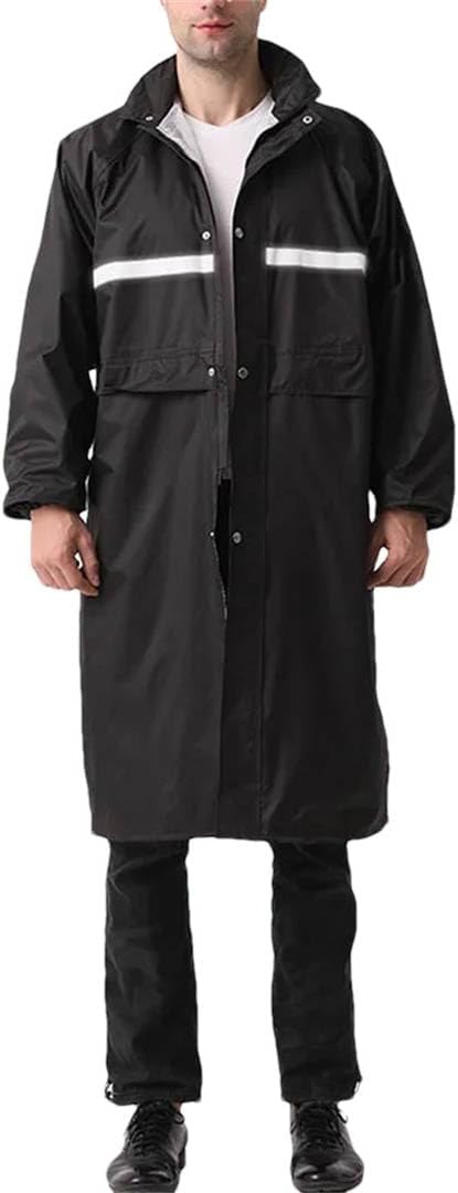 Thickened Long Men's Waterproof Raincoat Black Adult One Piece Rain Coat Hooded with Mesh Lining Rain Poncho