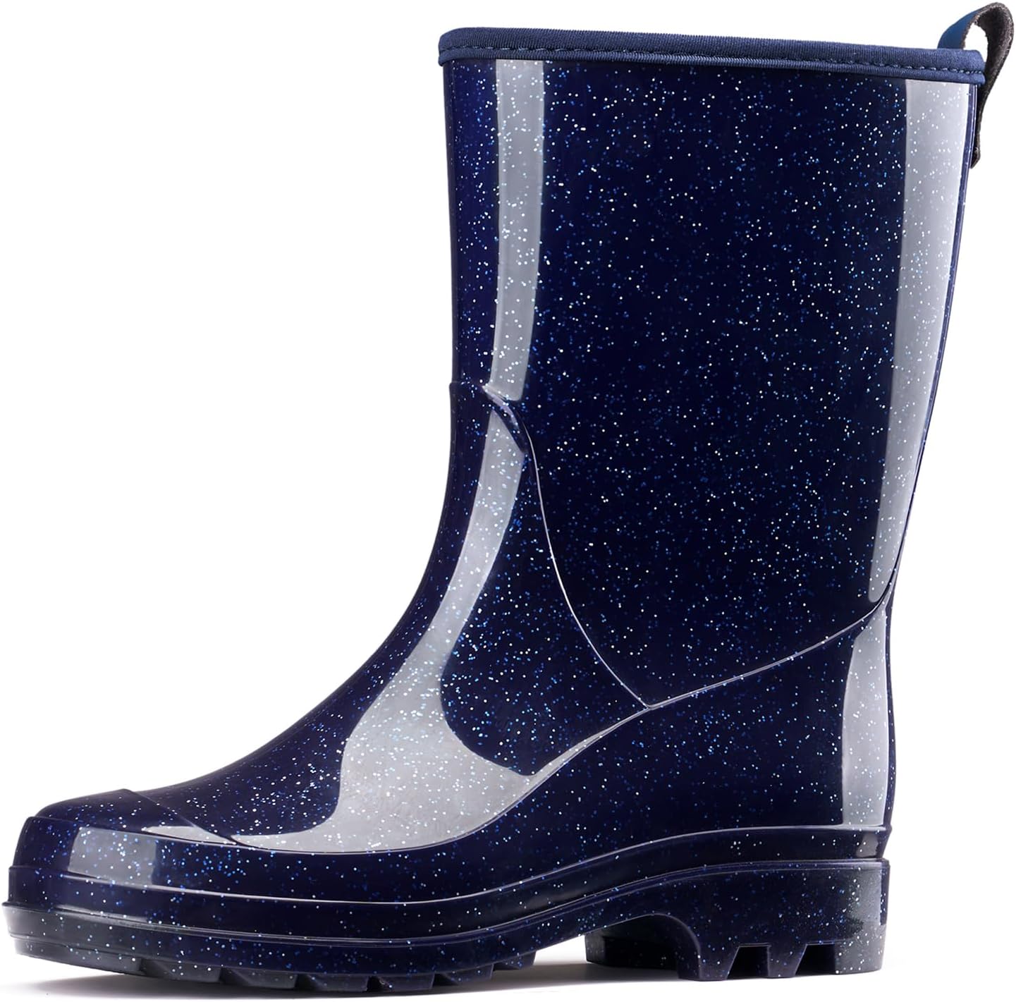 - 【Easy to Clean】The exterior has glossy plastic coating, protects the rain boots from stains and dirt, easy to clean by hose scouring or wiping by wet cloth, so you always look great. Mid calf shaft gives you plenty of coverage and prevent from splashing. The pull tab on the back helps slip on and off with ease.